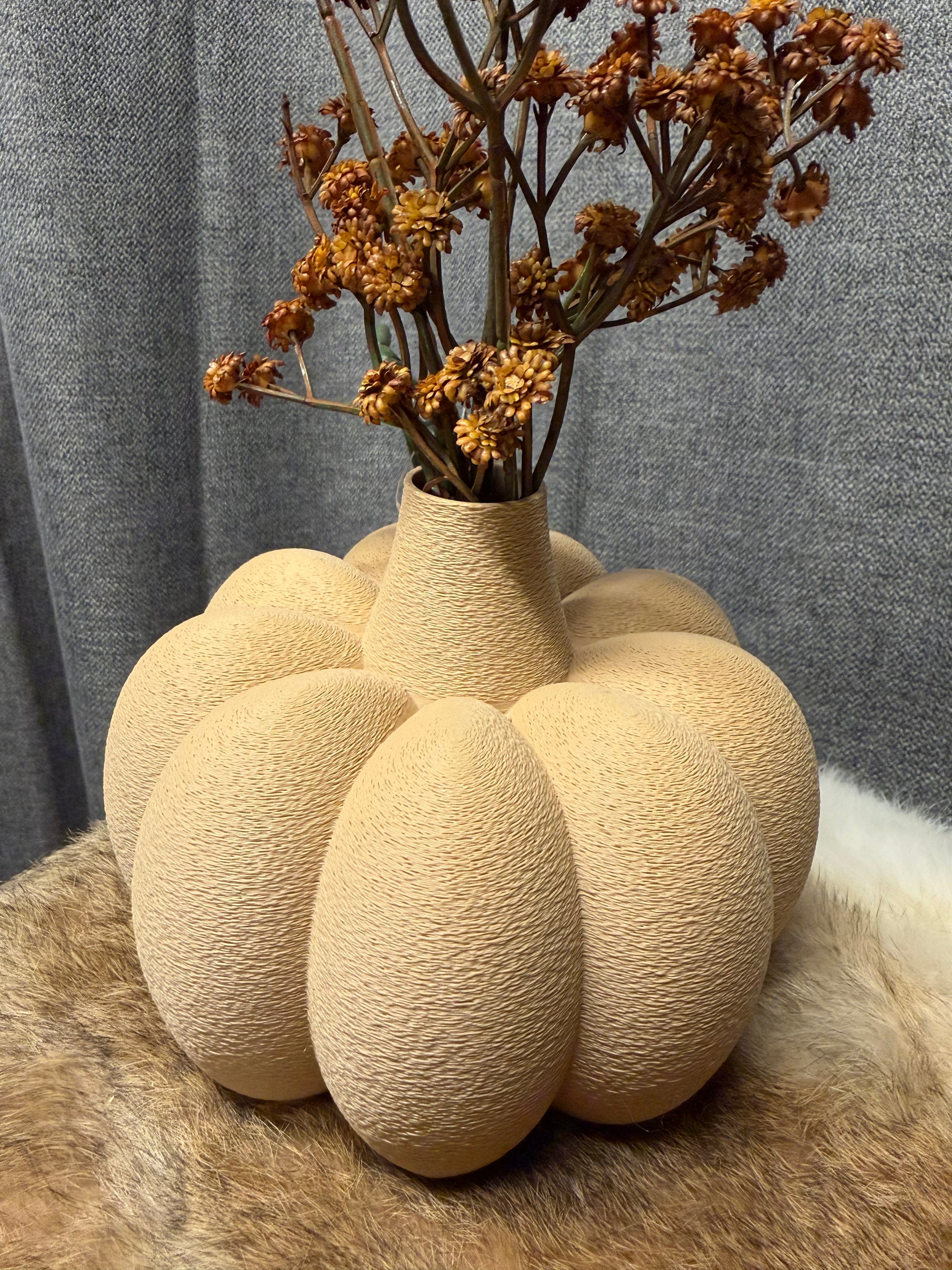 Ons unieke pompoen vaasje in warme caramelkleur is een stijlvolle blikvanger voor ieder interieur. Met zijn organische pompoenvorm en zachte glans past hij perfect in zowel moderne als sfeervolle, natuurlijke woonstijlen.