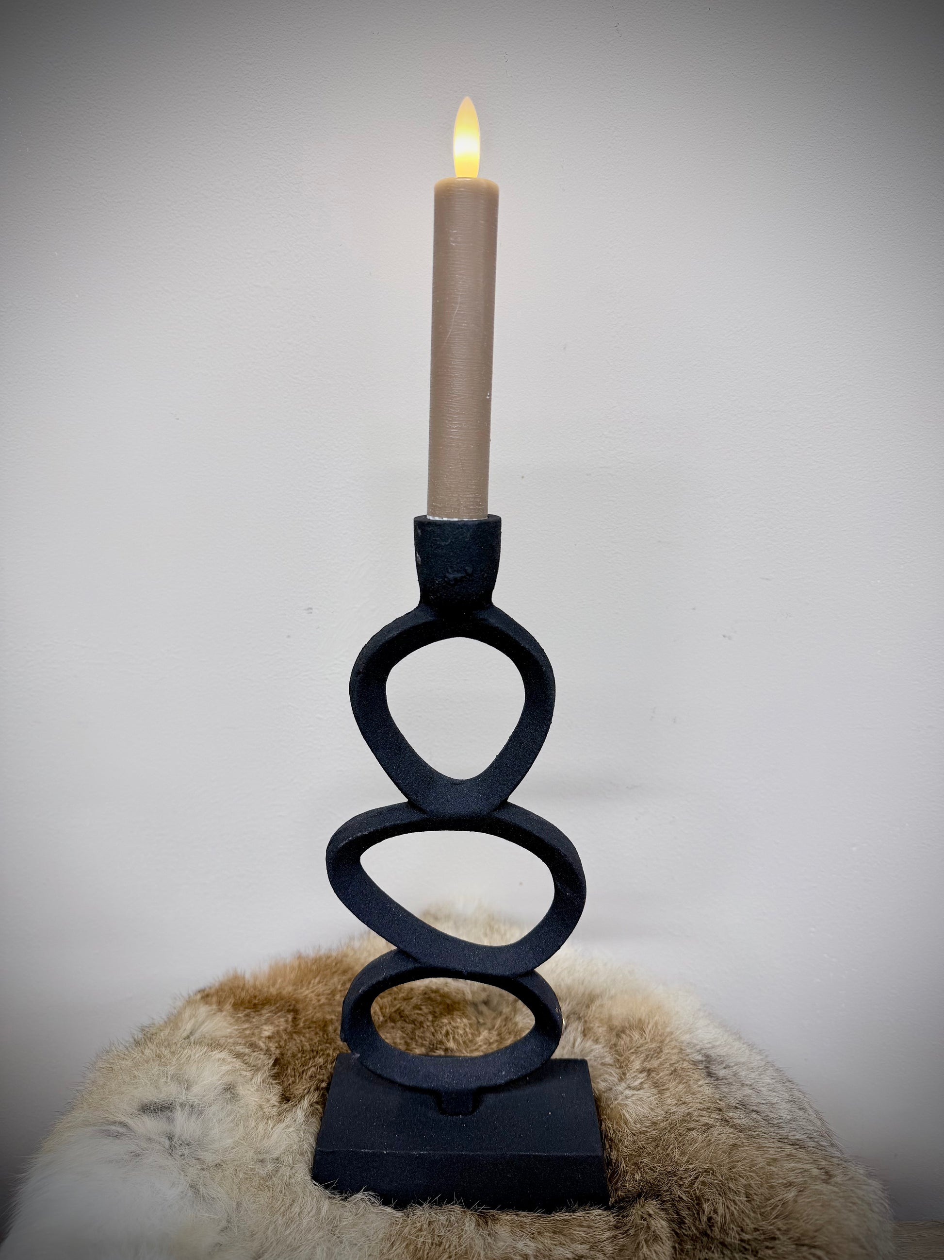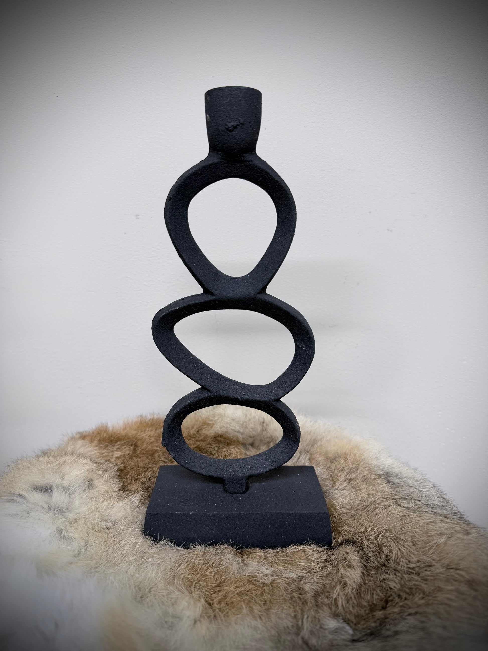 Voeg een stijlvolle, moderne touch toe aan je interieur met deze unieke zwarte kandelaar. Het abstracte ontwerp met vloeiende ovalen vormen maakt dit item een echte blikvanger — minimalistisch én karaktervol tegelijk. De matte zwarte afwerking geeft een stoere industriële uitstraling die perfect past in moderne, Scandinavische of luxe interieurs.